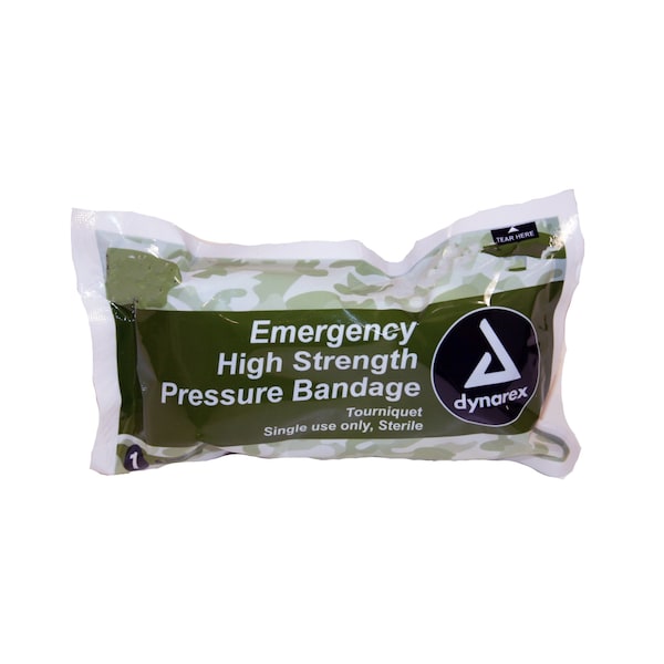 Emergency High Strength Pressure Bandage 6in Israeli Bandage equal . Emergency non-adherent dressing, an elastic type bandage, a pressure applicator and a locking closure clip