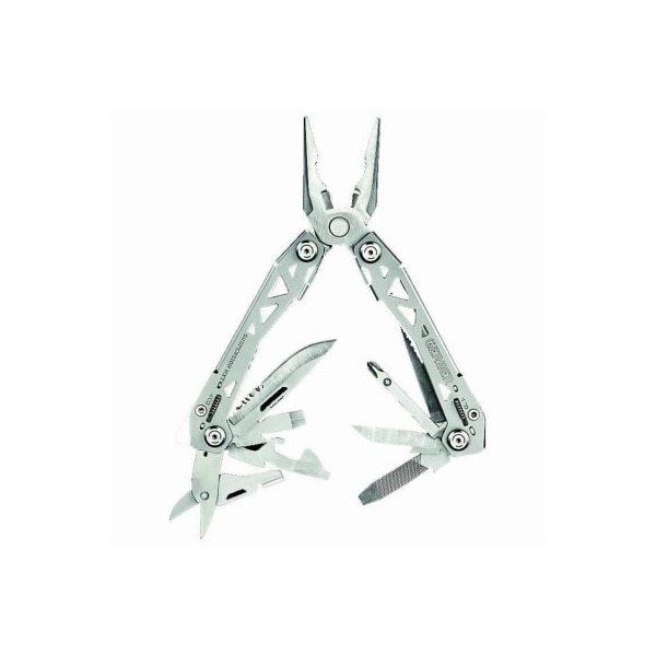 Suspension NXT multitool, tool count of 15, lighter and thinner by 25 than the original suspension, 25 longer 225 fineserrated blade, scissors, canbottle opener, real cross driver, smallmediumlarge flat drivers, vis pack