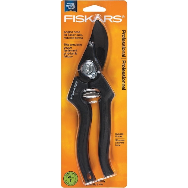 Pro bypass pruner have a replaceable resharpenable blade. Angled cutting head and ergonomic handle design reduces wrist fatigue and is comfortable to use. Blade tension can be adjusted to your hand strength and the materials being cut. Self-cleaning sap groove keeps blades from sticking. Corrosion resistant non-stick blade coating reduces friction to make cutting easier. Right or left handed use. 1 In. cutting capacity. Handle hang hole.
