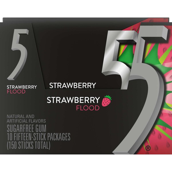 Five Sour Strawberry Gum 15 Pieces, PK120