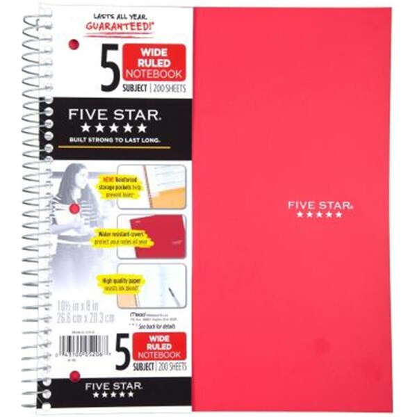 Features Mead Five Star 5 Subject Notebook Specifications Dimension: 9.5in W x 2in D x 10.56in L Weight: 2 lbs
