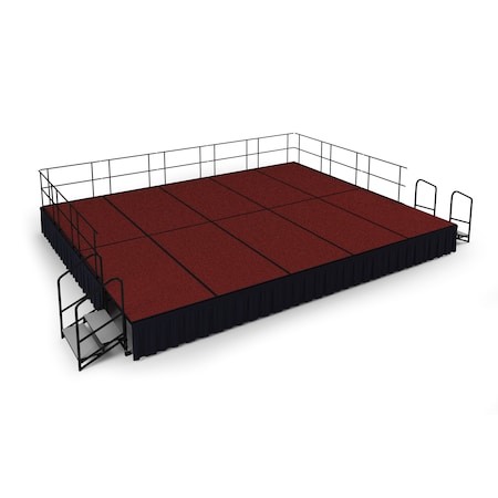 Stage Pack, 16 Ft.x24 Ft.x24"H, Red Carpet, Shirred Pleat Black Skirting