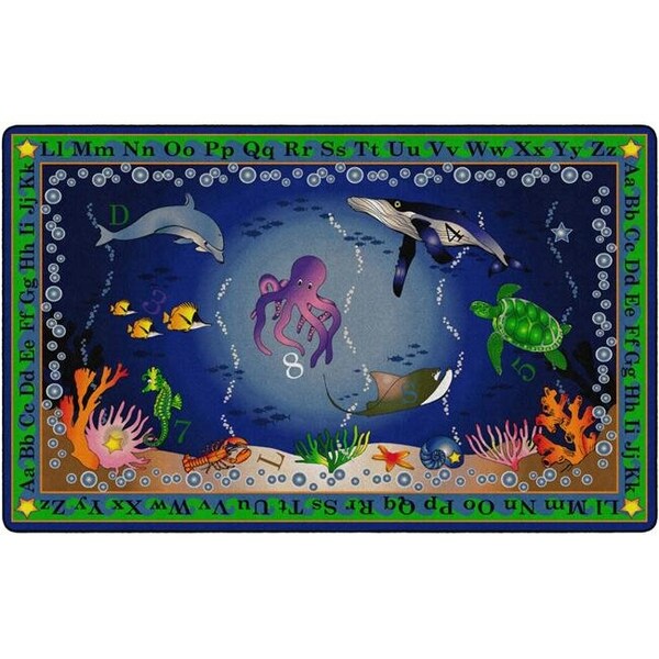Dive in for an exciting exploration at the bottom of the sea! Hidden letters and numbers. as well as swimming sea creatures create the ideal space for young. curious sea lovers! We offer state of the art digital print technology providing the education industries only 76 dpi (dots per square inch) high definition dye infusion technology with over 13.000 possible colors. the most innovative and flexible carpet printing machinery in the world. All Flagship Carpets are CRI Green Label Plus certified and meet or exceed California indoor air quality standards for low emitting products used in schools FeaturesMade 100% in the USAScotchgard-protector for superior soil resistance and stain protection100% Invista type 6.6. Continuous Filament NylonFORCE 5. a permanent anti-microbial agent to guard against odor. mildew and moldBound and double stitched serge with nylon edge yarn for maximum strength and durabilityUseful life wear warrantySpecificationsSize: 7' 6 x 12'Shape: Rectangle
