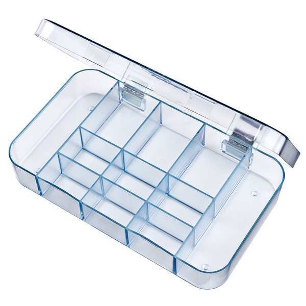 Compartment Box, Closure Type Snap, Color Clear, Compartment WxD (2) 1 3/16 in x 4 in, (3) 1 1/4 in x 2 in, (6) 1 1/4 in x 7/8 in, Electrostatic Discharge Not Electrostatic Discharge Conductive, Material Plastic, Maximum Number of Compartments 11, Number of Adjustable Dividers 0, Overall Height 1 3/8 in, Overall Length 4 1/4 in, Overall Width 7 1/4 in, Number of Fixed Dividers 0, Compartment Depth 4 in, Compartment Width 7 in, Inside Height 1 1/16 in, Inside Length 4 in, Inside Width 7 in