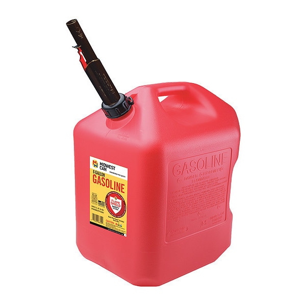 Gas Can, Capacity 6 gal, Compatible Fuel Gasoline, Tank Material HDPE, Venting Type Self-Venting, Spout Type Quick-Flow Spout, Spout Length 7 1/8 in, Spout Location Top - Removable, Color Red, Height 16 1/2 in, Width 9 3/4 in, Length 13 in, Includes Spout, Product Type Gas Can, Spout Outside Diameter 1 3/8 in, Standards CARB, EPA