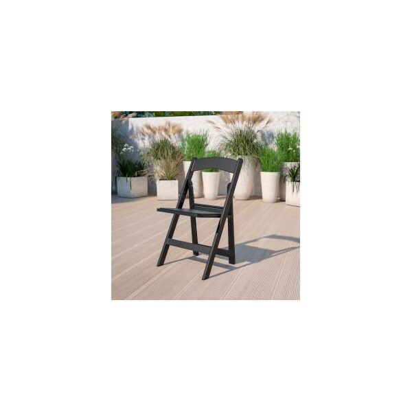 - COMMERCIAL GRADE BLACK RESIN FOLDING CHAIR FOR INDOOR OR OUTDOOR EVENTS 1000 LB. WEIGHT CAPACITY ACCOMMODATES MOST USERS LIGHTWEIGHT DESIGN FOR STORAGE AND PORTABILITY UV STABILIZED POLYPROPYLENE RESIN RESISTS FADING FROM SUN EXPOSURE CONSISTENT FRAME COLOR THROUGHOUT NO REPAINTING NECESSARY REMOVABLE WATERPROOF VINYL SEAT WITH CAL 117 FIRE RETARDANT FOAM NO ASSEMBLY REQUIRED FOR QUICK EVENT SETUP AND TAKE DOWN FOLDED SIZE: 17.5"W X 2.25"D X 35"H ANTI-STATIC PREVENTS UNWANTED STATIC DISCHARGE FOLDING CHAIR FOR RENTAL COMPANIES, BANQUET HALLS AND EXTRA SEATING IN THE HOME