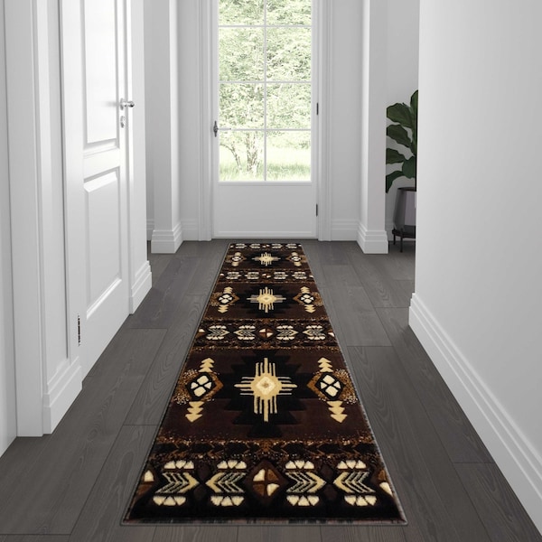 2' x 7' Chocolate Rustic Southwest Style Area Rug