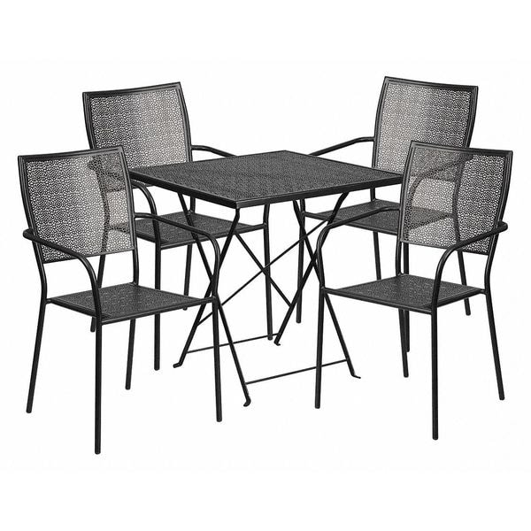 28" Square Black Steel Folding Table w/ 4 Chairs