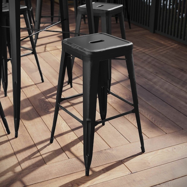 30" High Backless Distressed Black Metal Barstool