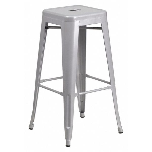 Bar Stool, Overall Height 30 in, Overall Width 17 in, Overall Depth 17 in, Seat Width 12 in, Seat Depth 12 in, Seat Color Gray, Back Color Not Applicable, Frame Color Silver, Seat Material Metal, Frame Material Metal, Assembled, Arm Style Armless, Weight Capacity 500 lb