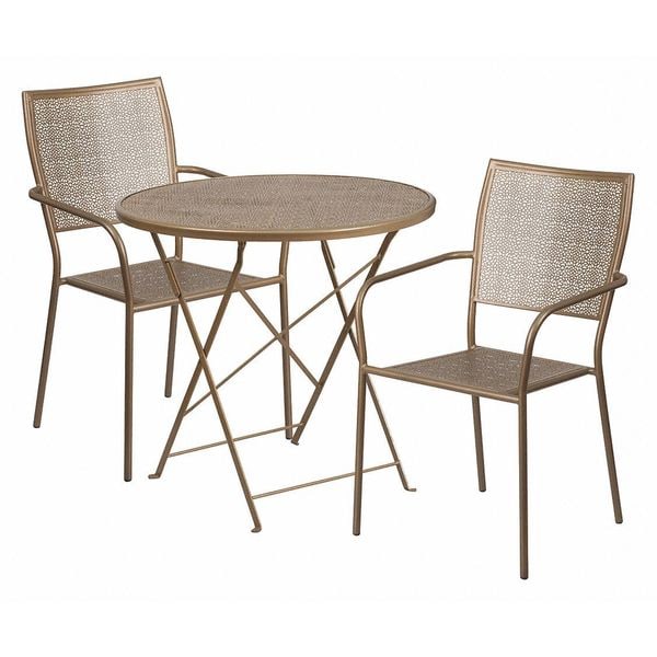 30" Round Gold Steel Folding Table with 2 Chairs
