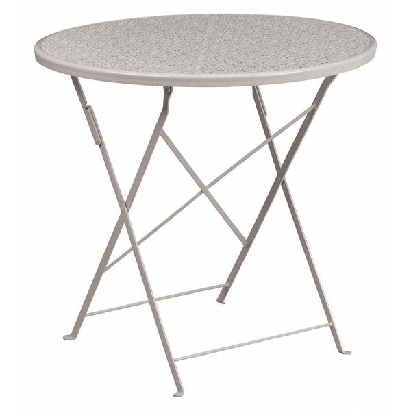 30" Round Light Gray Steel Folding Patio Table