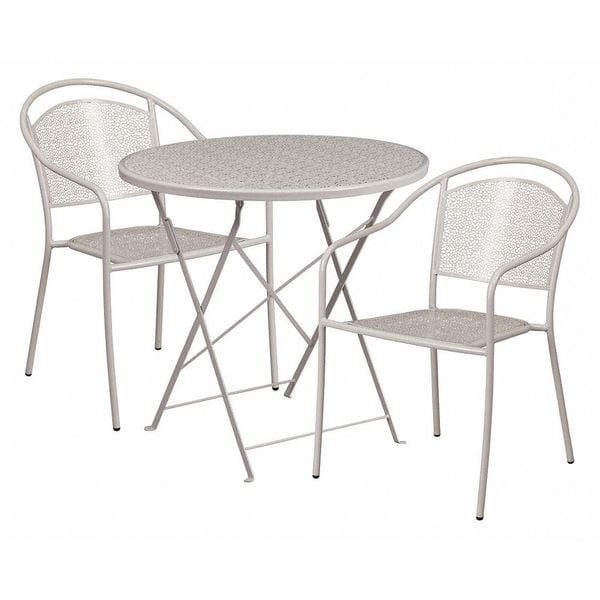 30" Round Lt Gray Steel Folding Table w/ 2 Chairs