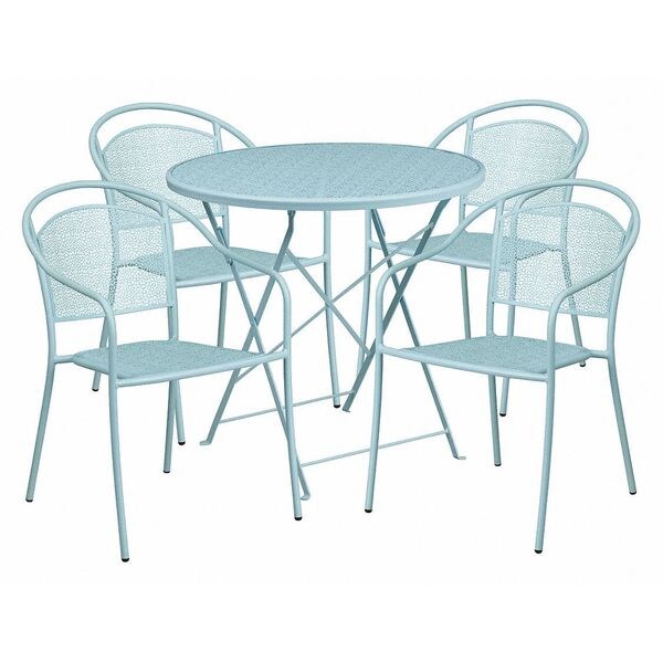 30" Round Sky Blue Steel Folding Table w/ 4 Chairs