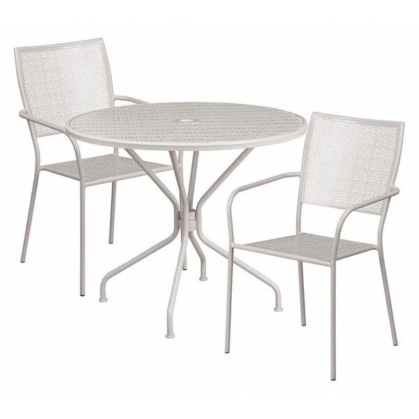 35.25" Round Lt Gray Steel Table with 2 Chairs