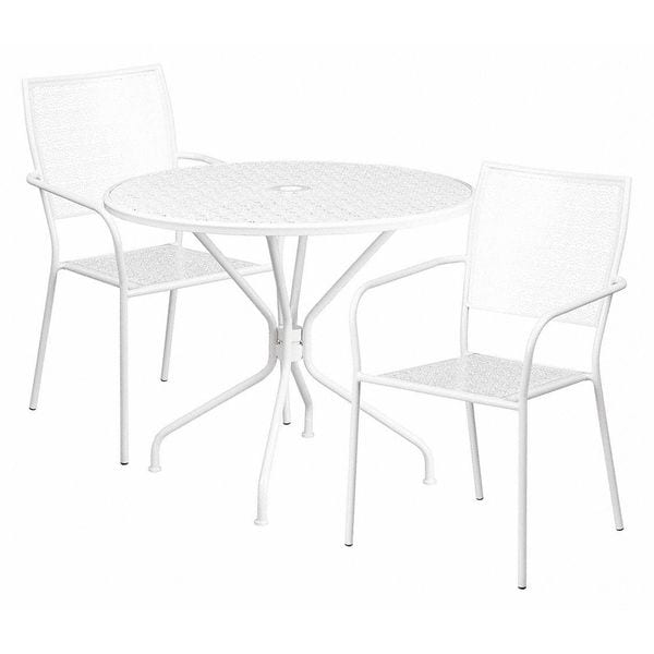 35.25" Round White Steel Table with 2 Chairs