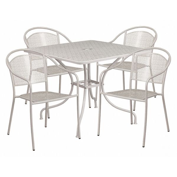 35.5" Square Lt Gray Steel Table w/ 4 Chairs
