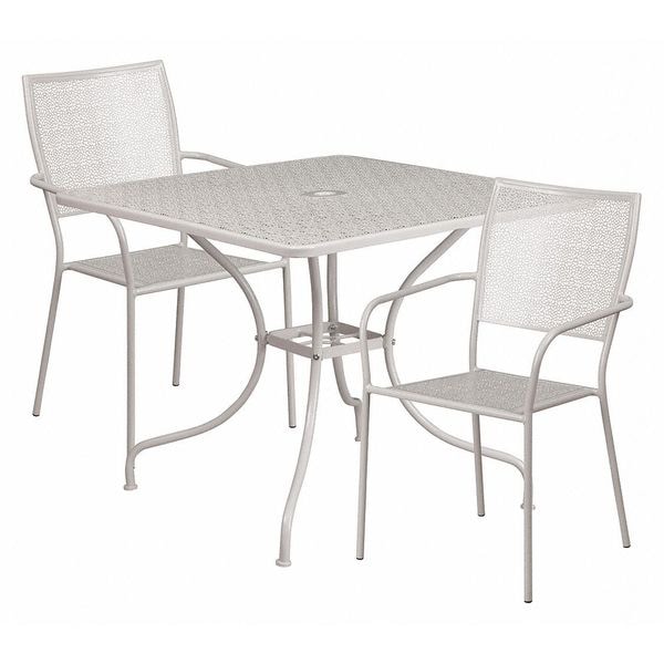 35.5" Square Lt Gray Steel Table w/2 Chairs