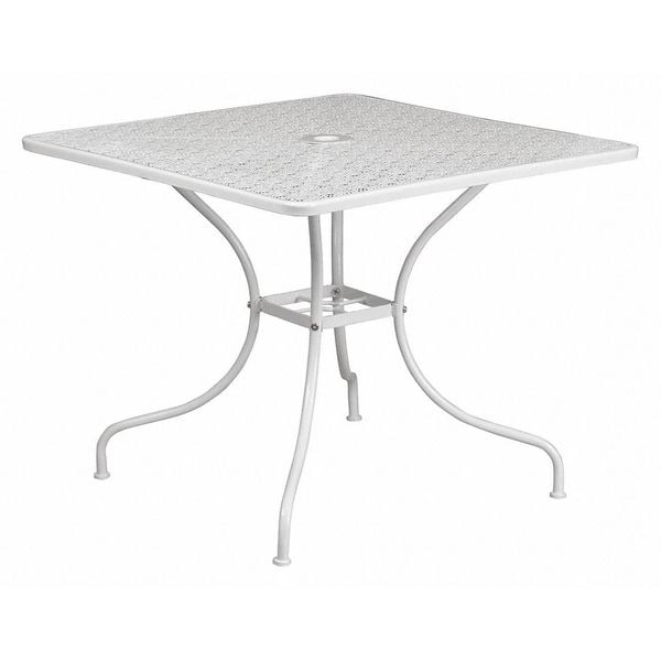 35.5" Square White Steel Patio Table-Umbrella Hole