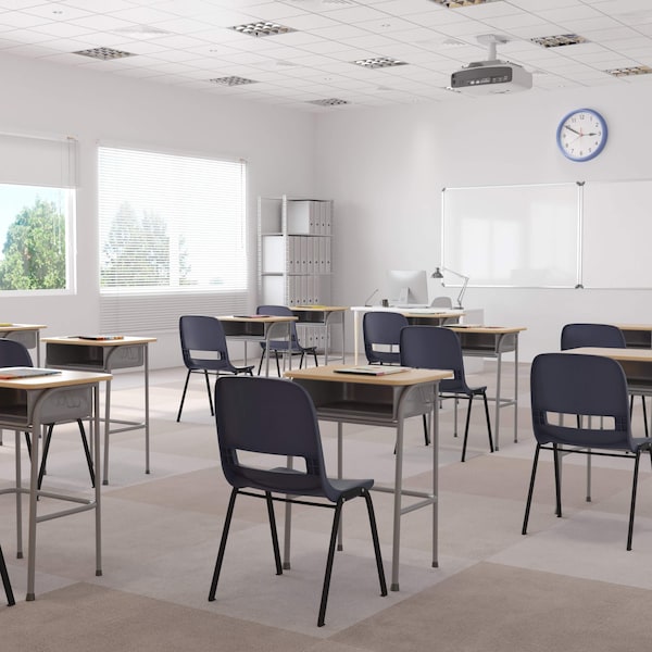 Run a smooth after school program by having plenty of these heavy-duty plastic stack chairs around rambunctious kids who tend to be tough on seating. These classroom chairs are comfortable with an air-vented back and waterfall seat edge to put students at ease while learning. The 16" seat height is ideal for 3rd - 7th Grade students. These school stack chairs are built to last with a dual braced frame that can hold up to 661 pounds. School maintenance workers can appreciate student chairs that can stack for floor upkeep, these student desk chairs stack up to 15 chairs high. We consider this student stack chair to be the premier stack chair - essential for every school and classroom setting.