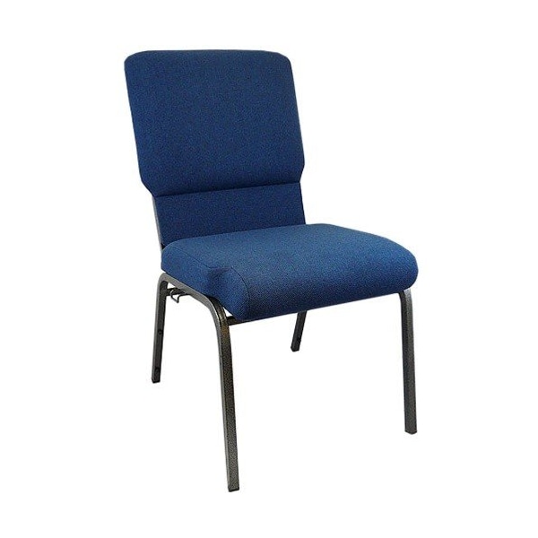 The Navy Molded Foam Church Chair - 18.5 in. Wide with Silver Vein Frame provides a durable seating solution for your fellowship hall or convention center. This comfortably padded stack chair not only satisfies seating in Churches, but work well in hotel lobbies, banquet halls and conference facilities. Keep all guests engaged with the 3" thick foam padding containing zero fillers. Integrated ganging devices connect chairs together for uniform row seating. This padded chair was built to last with a 800 lb. weight capacity, 16 gauge steel frame and T-Nut construction with a metal on metal connection that's more durable than traditional wood screws. These beautifully crafted chairs go from the truck to your Sanctuary, as they don't require any assembly. Save your staff time and frustration with the purchase of these ready-to-use Stackable Church Chairs.