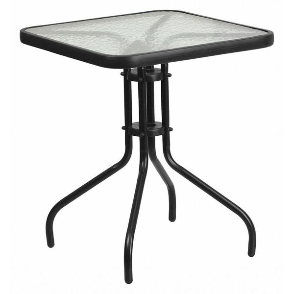 Patio Table, Frame Color Black, Frame Material Metal, Includes Umbrella Hole No, Overall Diameter Not Applicable, Overall Height 28 in, Overall Length 23 1/2 in, Overall Width 23 1/2 in, Tabletop Color Clear, Tabletop Structural Material Glass, Frame Finish Powder Coated, Resistance Properties Weather Resistant, Shape Square, Umbrella Hole Diameter Not Applicable, Tabletop Texture Solid, Assembly Unassembled, Product Type Patio Table, Weight Capacity 130 lb, Maximum Number of Seats 2