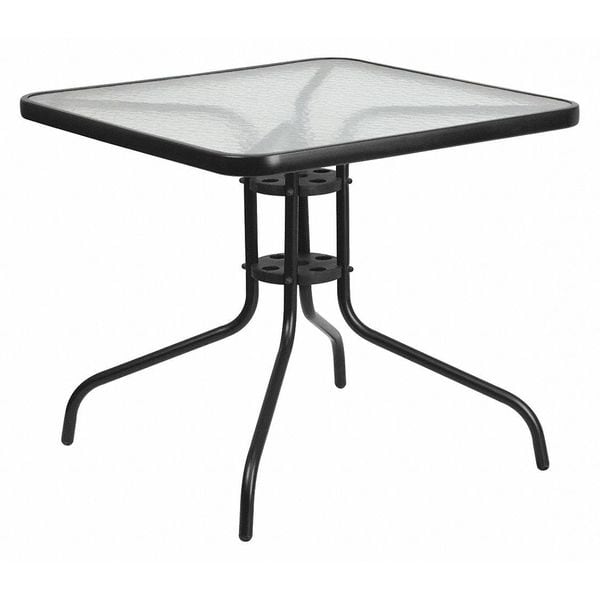Patio Table, Frame Color Black, Frame Material Metal, Includes Umbrella Hole No, Overall Diameter Not Applicable, Overall Height 28 in, Overall Length 31 1/2 in, Overall Width 31 1/2 in, Tabletop Color Clear, Tabletop Structural Material Glass, Frame Finish Powder Coated, Resistance Properties Weather Resistant, Shape Square, Umbrella Hole Diameter Not Applicable, Tabletop Texture Solid, Assembly Unassembled, Product Type Patio Table, Weight Capacity 130 lb, Maximum Number of Seats 4