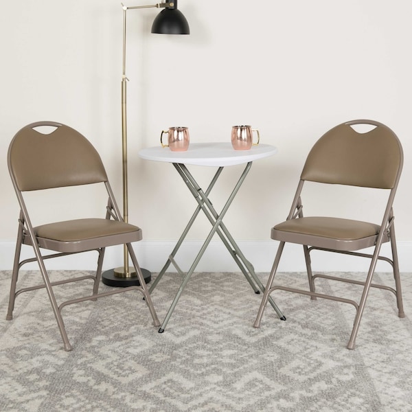 Beige Vinyl Folding Chair, PK2