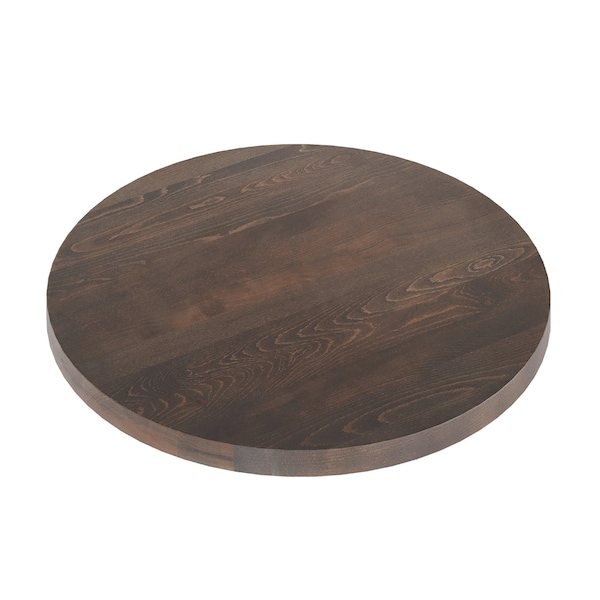 Elevate the look of your restaurant, brewery, or winery when you purchase this beautiful, solid wood, 30 inch round commercial grade rectangular tabletop that seats up to 3 adults. The stunning dark brown finish lends upmarket style while the water-resistant properties, along with a scratch proof surface, brings reliable durability to your establishment. Measuring 1.5 inches thick and made of solid beechwood, with metal support bars, this industrial table top is more than capable of withstanding the demands of the hospitality industry and hold up to 300 lbs. static weight. Available in multiple shapes and sizes, these butcher block tabletops can be used together to add depth and dimension to your dining room. Attaching this tabletop to a compatible base not included is quick and easy and cleanup is a breeze requiring only a damp cloth and neutral detergent.