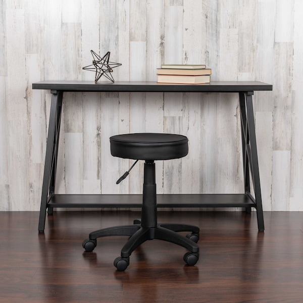 Black Adjustable Doctors Stool on Wheels with Ergonomic Molded Seat
