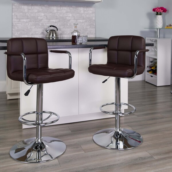 Brown Quilted Vinyl Barstool,PK2, Package Quantity 2