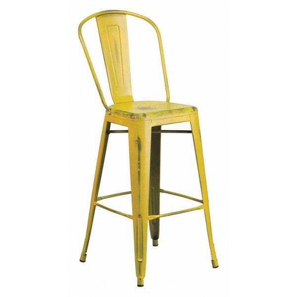 Distressed Yellow Metal Stool, Seat Height Range: 30"