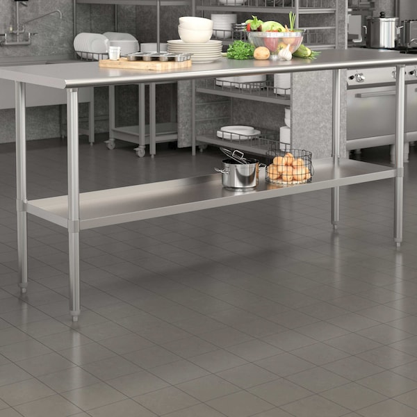 Add extra storage in your restaurant or commercial kitchen when you purchase this galvanized steel under shelf for your 30 x 72 work table. Ideal as an add-on shelf for holding spices, utensils, or bakeware, this additional under shelf is a space-saving must. If you have a shelf that has seen better days, this under shelf for work tables allows you to quickly and easily replace a worn out shelf. Use this steel shelf in addition to your existing lower shelves in small spaces to free up counter and cabinet space or walk-in refrigeration units to hold produce or meats. Not only for business use, this under shelf can also be an add-on shelf for work tables in home based catering and bakery enterprises where space is at a premium. Using this well made undershelf in your business is easy and safe. Tough and durable, this 18 gauge galvanized steel shelf will take what you dish out and come back for more. Add the steel shelf by sliding onto the legs of your work table, tighten the set screws and voila! Adjustable to your desired height and easily cleaned with a neutral detergent, this galvanized lower shelf meets the demands of today's kitchens.
