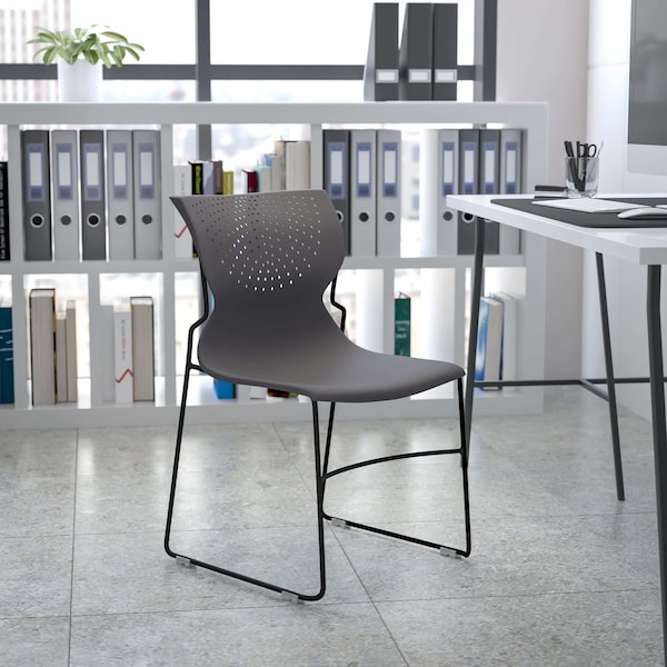 If you're looking for modern yet flexible seating for the front office of your business this sled base stack chair will outshine. This chair is highlighted by a deep curved back for lumbar support in a perforated design. Stack chairs are a popular choice in many industries, including the home for their compact and portable design. Furnish any high traffic space with this plastic guest chair, the plastic surfaces are easy to maintain in busy lobbies and cafeterias. The heavy-duty plastic stack chair is sturdy in construction to withstand frequent stacking. After use in temporary settings such as multi-use meeting spaces or school functions this chair stacks up to 25 chairs high. To make transporting even easier, equip yourself with our compatible sled base stack chair dolly. When in need of a space-saving seating solution that is permanent or temporary, allow this stackable side chair to work for you.