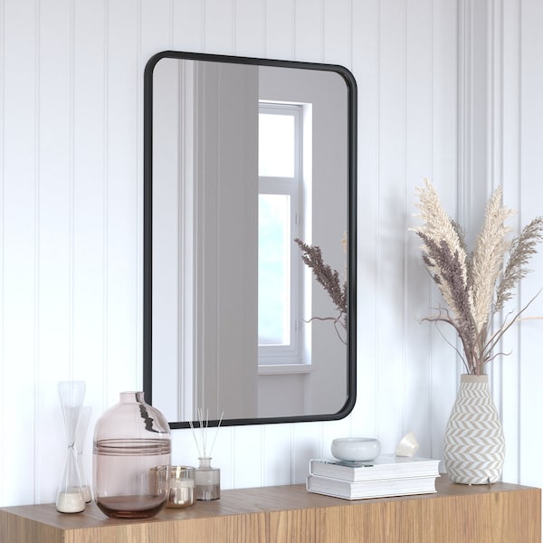 Jada 24 x 36 Decorative Wall Mirror - Rounded Corners, Matte Black