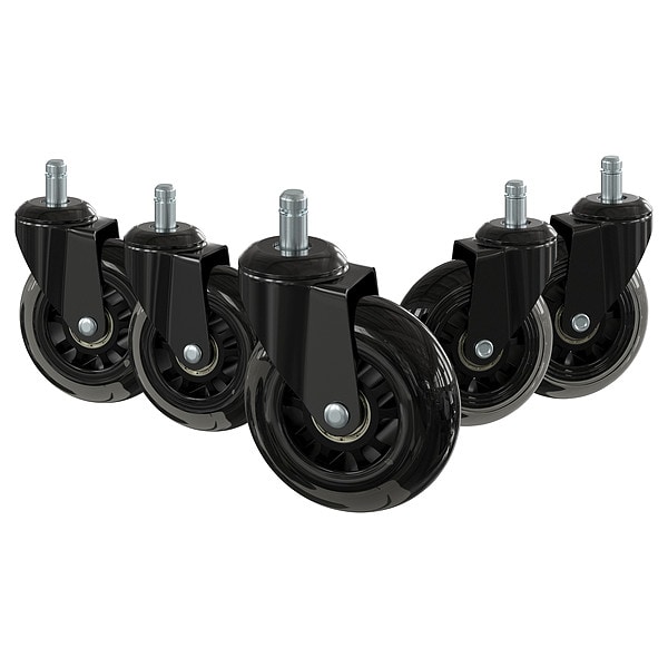 Office Chair Caster Wheels, Product Type Office Chair Caster Wheels, Overall Length 3 in, Overall Width 1 in, Overall Height 4 1/2 in, Color Black, Material Steel, Stem Diameter 7/16 in, Swivel Yes, Swivel Lock No, Thread Size Not Applicable, Wheel Diameter 3 in, Wheel Texture Hard, Roll Lock No, Mounting Hardware Required Not Applicable, For Use With Gaming Chairs, Office Chairs, Standards Not Applicable, Mount Type Insert, Package Quantity 5