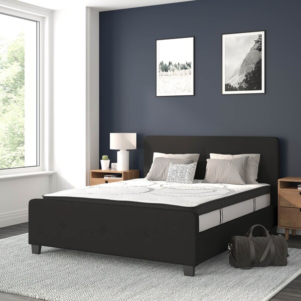 This casual looking platform bed has button tufting that adds a nice touch to display a unique look in your bedroom. If you're on the market for a bed that provides an open concept feel, this bed provides that in a stylish package. The headboard won't take up too much wall space so you can add decorative art above its frame. With a low set footboard it makes a presence that won't overrun your space. The matching button tufted headboard and footboard unify the design. The frame features a center support leg and 30 wooden slats that are designed to support the mattress without the use of a box spring. The 10" pocket spring mattress provides superior motion isolation and supports the contours of your body. The interior make-up consists of pocket spring coils and CertiPUR-US Certified foam. The mattress instantly starts expanding once you cut the plastic and will return to its original shape in 48 to 72 hours. Update your bedroom or guest bedroom furniture with this easy-going bed set.
