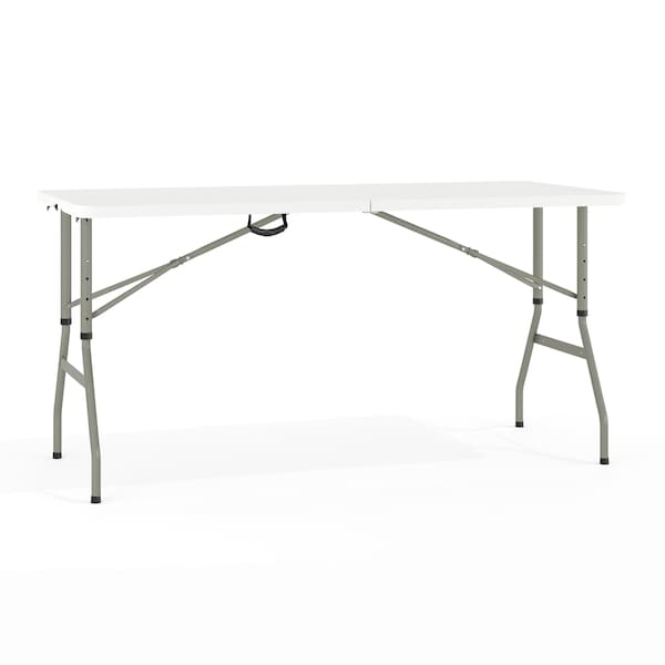 Rectangle Bi-Fold Table, Plstc, White, Adj., 30" x 60", Plastic Top, White