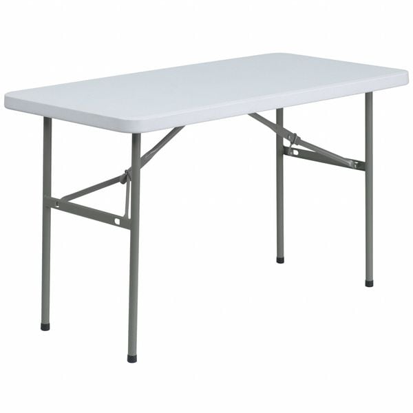 Rectangle Wh 24X48 Plastic Fold Table, 24" W, 48.25" L, 29" H, Plastic Top, White