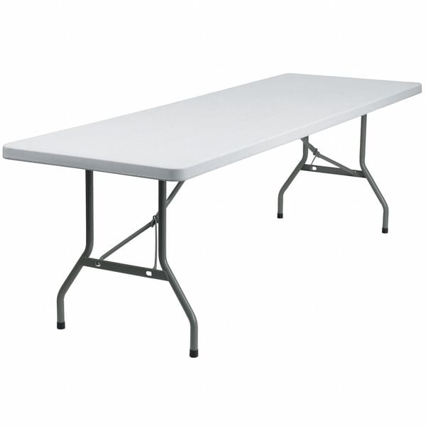 Rectangle Wh 30X96 Plastic Fold Table, 30" W, 96" L, 29" H, Granite White