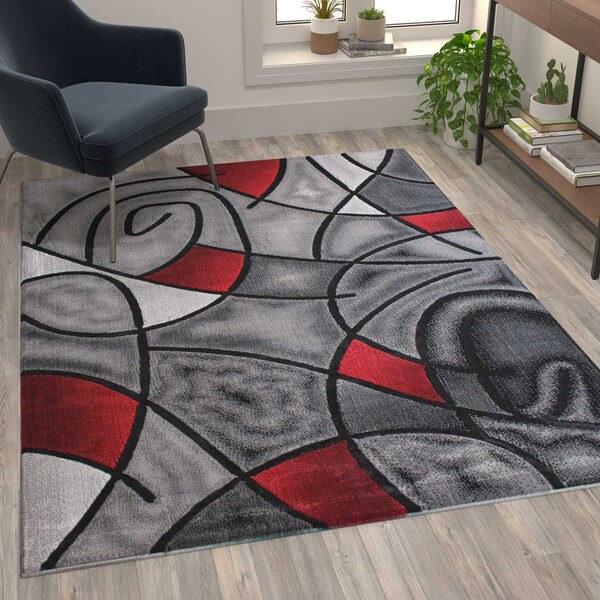 Modern art looks great in more places than just on the wall with the distinctive abstract pattern of this area rug. This versatile contemporary accent rug allows you to add warmth to hardwood floors, add color in multiple spaces, and protects flooring in high-traffic areas. This high pile area rug can be a warm place for your feet by the bed or an accent in your design scheme. Modern rugs provide several benefits in the home. Made from olefin fibers, this cutting edge area rug is stain and water resistant, colorfast, and provides a soft underfoot feel friendly to kids and pets. The jute backing gives this rug structural integrity and helps promote air flow. Vacuum regularly without the beater bar and spot clean with water and a mild detergent to maintain the look of your new rug.