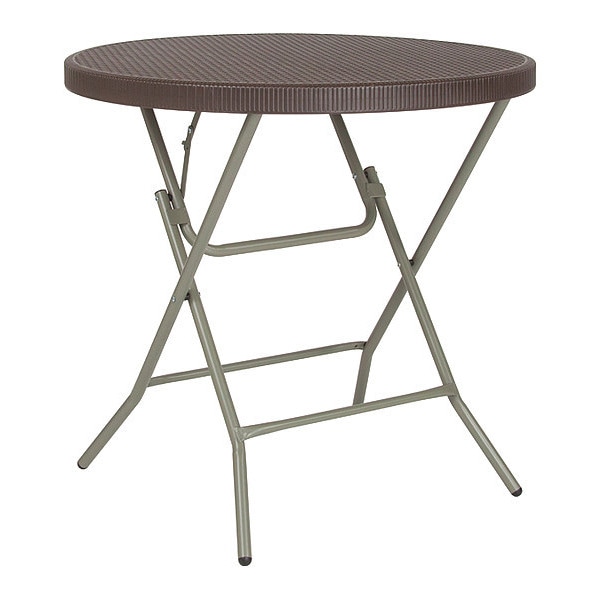 Rattan Folding Table,Round,Brown,31.5 In.