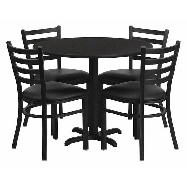 Blk Laminate Table,Vinyl Seat,Rnd,36 In.