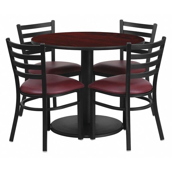 Laminate Table,Rnd w/Burg Vinyl Seat,36 In.