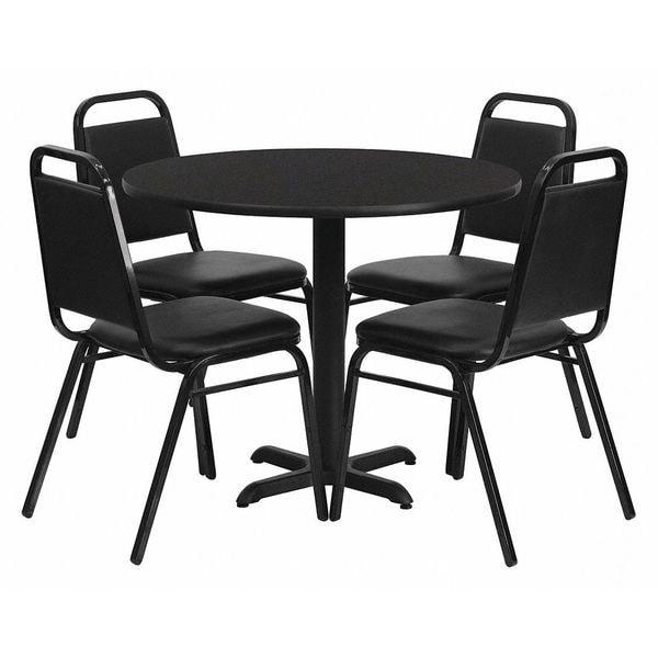 Blk Laminate Table,Banquet Chair,Rnd,36 In.