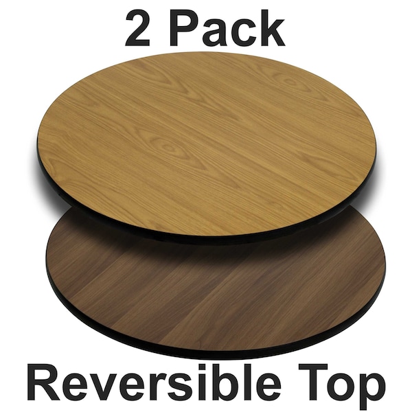 Round Reversible Top,Natural/Walnut,PK2, Package Quantity 2