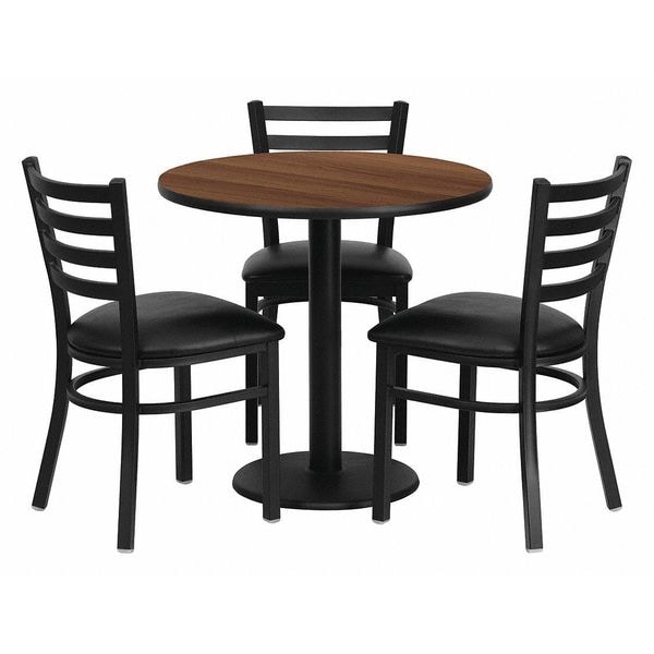 Walnut Lam Table Set,Blk Seat,Rnd,30 In.