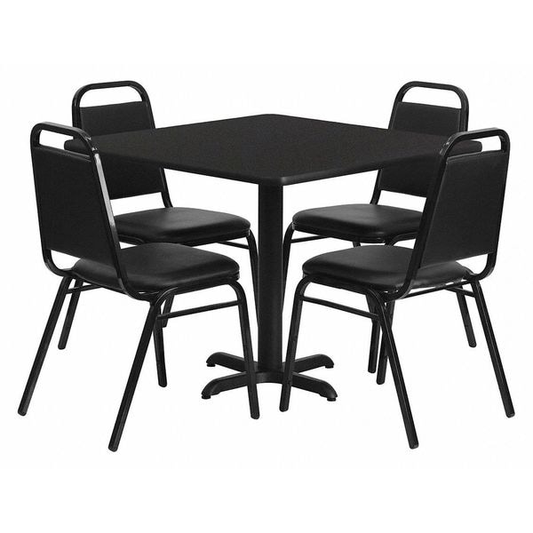 Blk Laminate Table,Banquet Chair,Sqr,36 In.