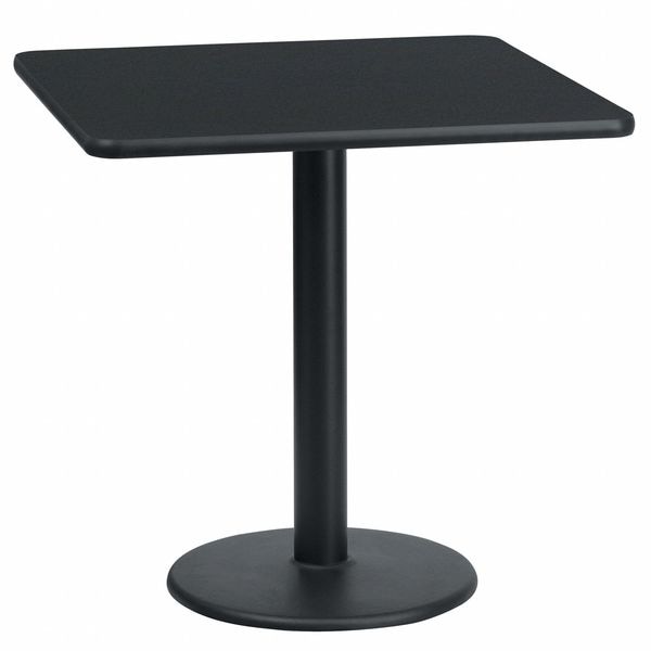 Blk Laminate Table,Sqr w/Round Base,24 In.