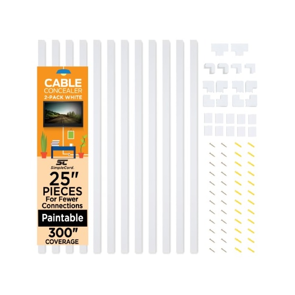 The Cord Concealer Kit from Fleming Supply is a simple and effective cable management option to keep your home neat and safe. The 48-piece set includes six 25-inch cable raceways, 6 strips of self-adhesive tape, 12 connectors (5 straight, 4 elbows, 1 inside elbow, 1 outside elbow, 1 T), 12 screws and 12 wall anchors. All the pieces can be painted to match your wall color, so they disappear into the wall, keeping electrical cords out of sight and out of children's hands.
